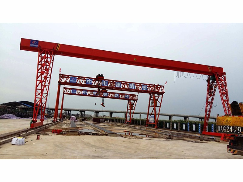 它的金属结构像门形框架,承载主梁下安装两条支脚,可以直接在地面的轨道上行走,主梁两端可以具有外伸悬臂梁。
